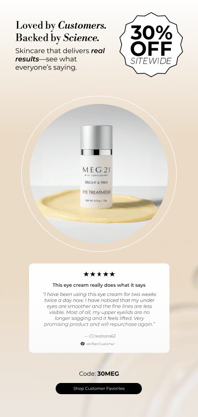 Meg 21 supports firmer, more resilient texture by preserving collagen and elastin integrity