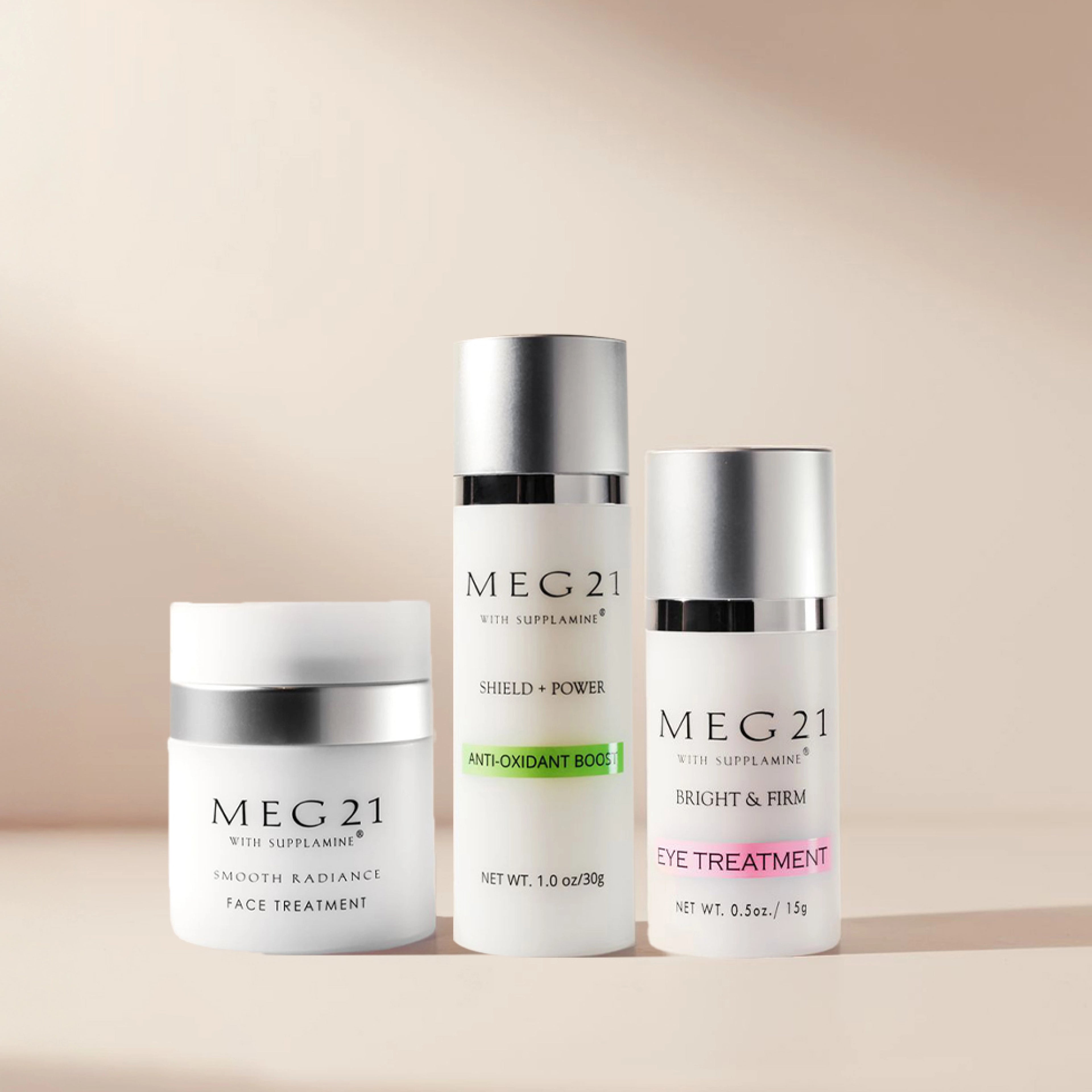*Disclaimer: The information presented on website is for educational purposes only and is not intended to diagnose, treat, cure, or prevent any disease. *Clinical References: References to clinical studies relate to the evaluation of ingredients or product formulations for visible skin appearance and condition. *Supplamine® is a patented compound developed for cosmetic use. Statements regarding its effects are based on in vitro studies, ingredient data, and third-party clinical evaluations of finished skincare products. *No Medical Claims: MEG 21 products are cosmetic and not drugs. They are not intended to modify the structure or function of the skin or body. *Individual Results May Vary.